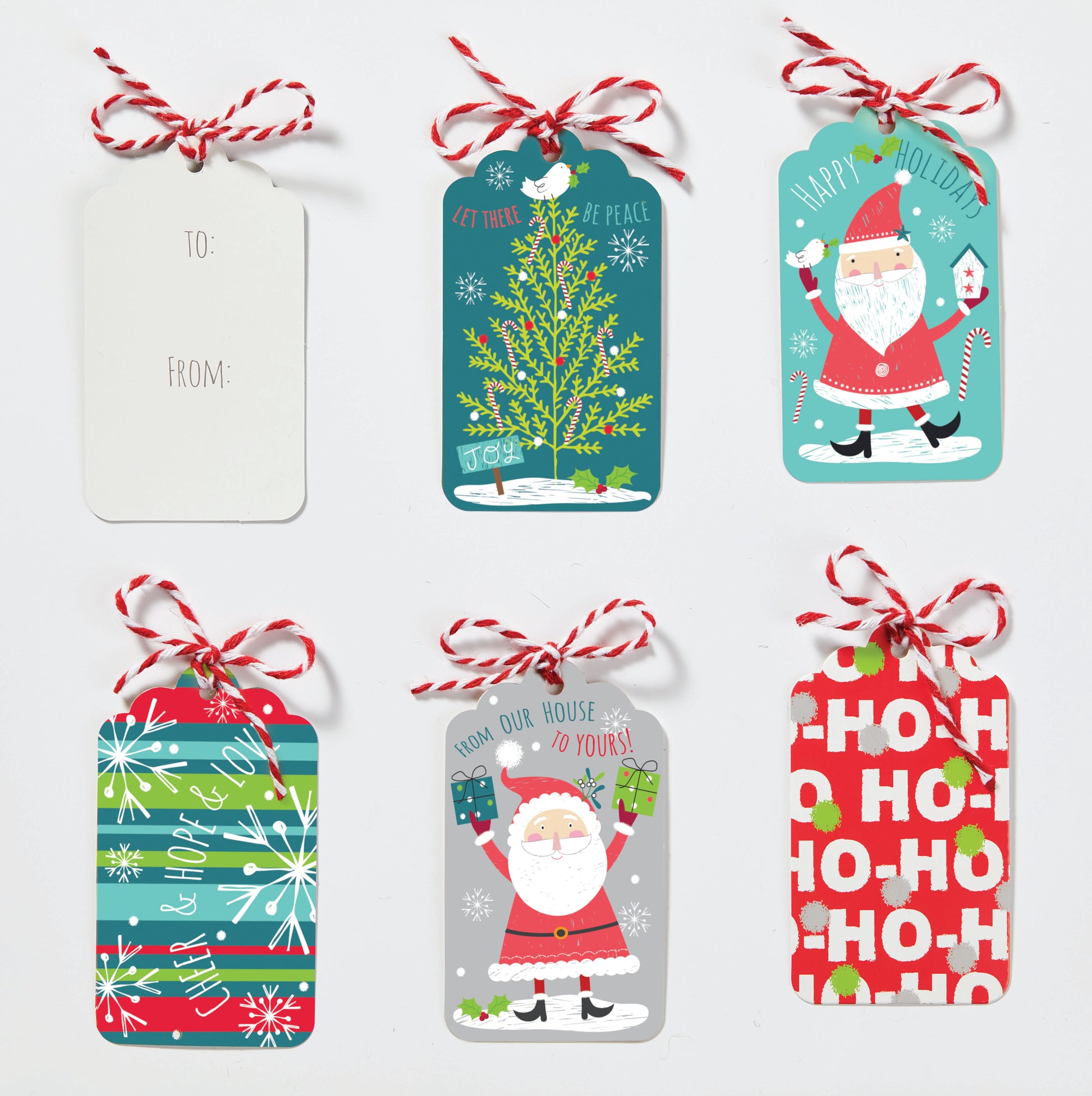The tags are designed with 5 happy and cheerful options and include "to" and "from" information on the back. They are also equipped with rustic twine for easy attachment. Each pack contains 40 card stock tags measuring 2.5" x 3.25", complete with jute string.